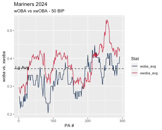But the Mariners arenât being rewarded for their high quality contactâexpected results exceed actual results by more than 50 wOBA points.