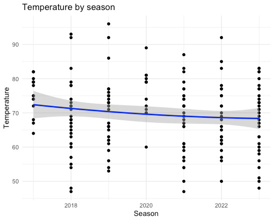 In both the temperature and D-in-D models, once I added fixed effects for the season and his team (Reds vs Mariners), and then clustered by season, any statistically significant relationship with weather disappeared. The results remained directionally similar, but it’s not possible to conclude that temperature independently affects Castillo’s performance.